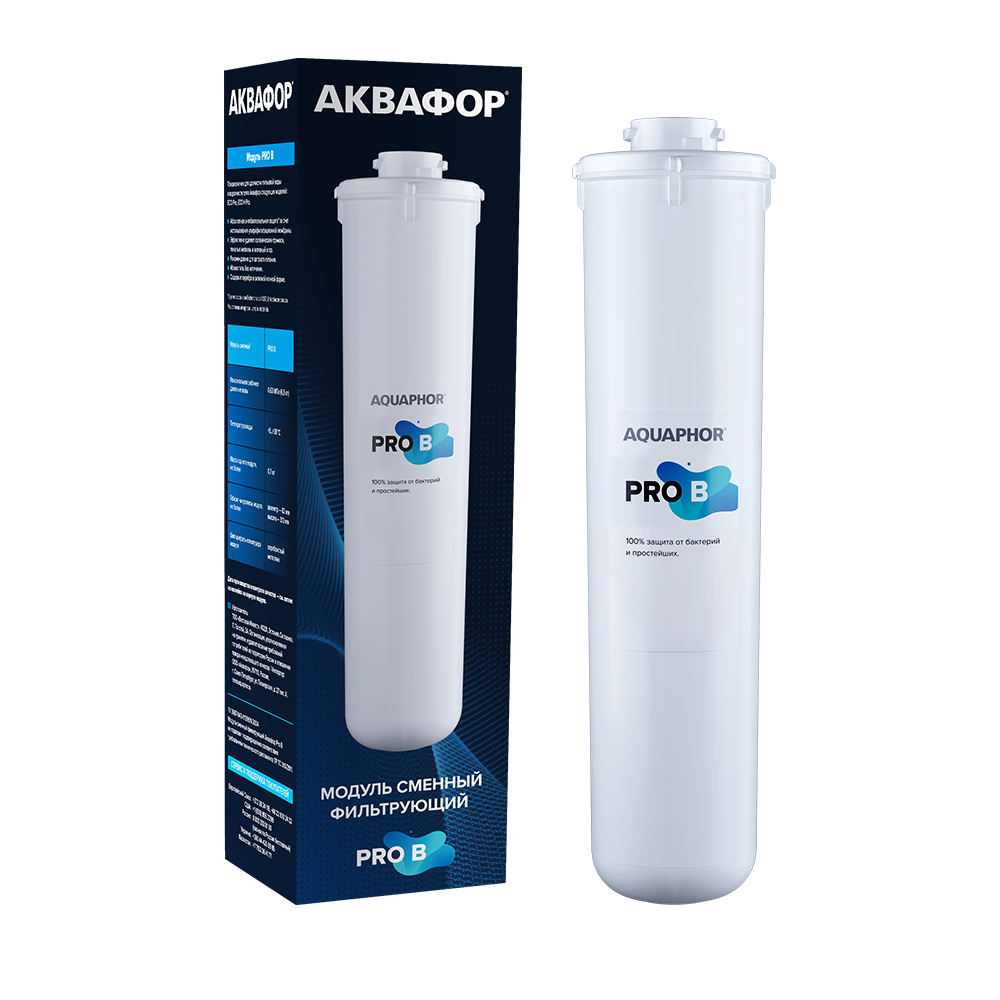 Модуль Pro B с ультрафильтрационной мембраной обеспечивает механическое удаление бактерий и цист без применения химических бактерицидов. Поры мембраны в 5 раз меньше любого микроорганизма, поэтому вода не требует кипячения и безопасна для всех членов семьи, включая людей с аллергиями и чувствительным пищеварением. Подходит для детского питания.