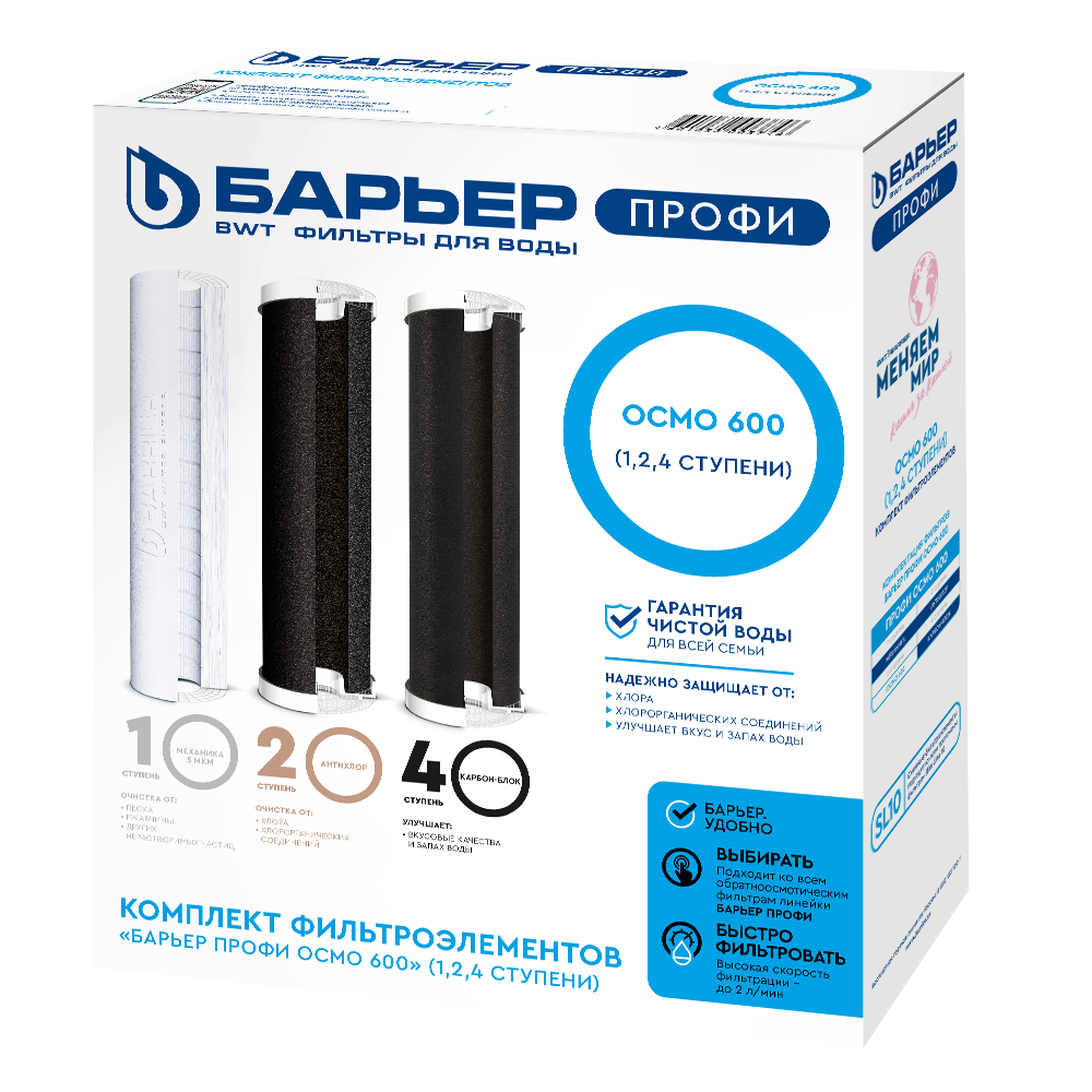 Надежная защита от механических примесей, от хлора, хлорорганики и фенольных соединений. Улучшает вкусовые качества и запах воды.