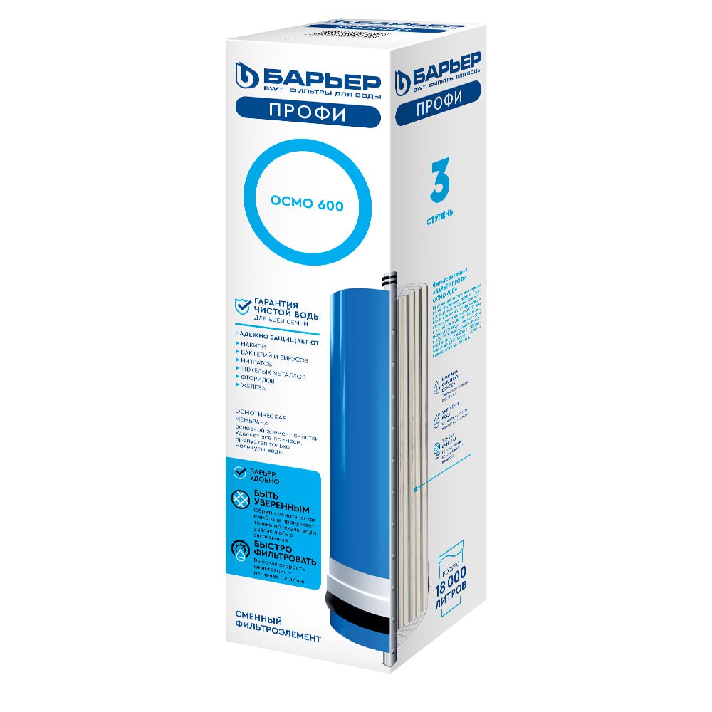 Фильтроэлемент пропускает только молекулы воды, задерживая бактерии и вирусы, соли жесткости, нитраты, нитриты, фториды, тяжелые металлы.