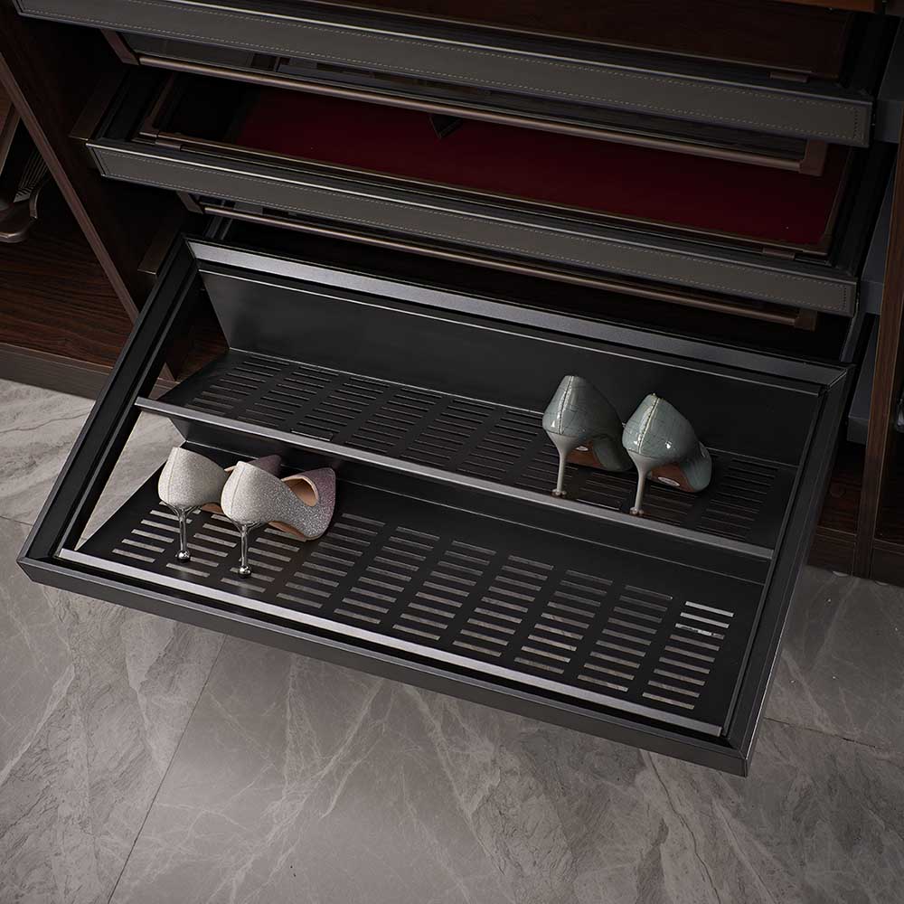 - Рекомендуется установить несколько выдвижных держателей друг над другом для организации хранения разных видов обуви в шкафу или гардеробной.