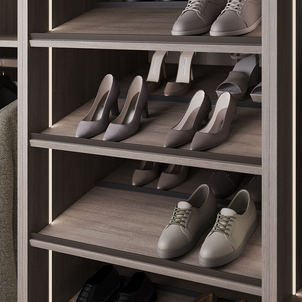 - Стильное и функциональное решение для организации хранения обуви в шкафах и гардеробных.