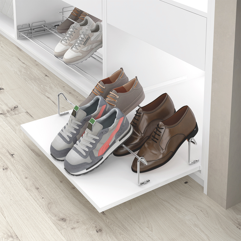 - Современная и удобная замена стандартной полки шкафа – вся обувь перед глазами, её можно быстро и легко достать.