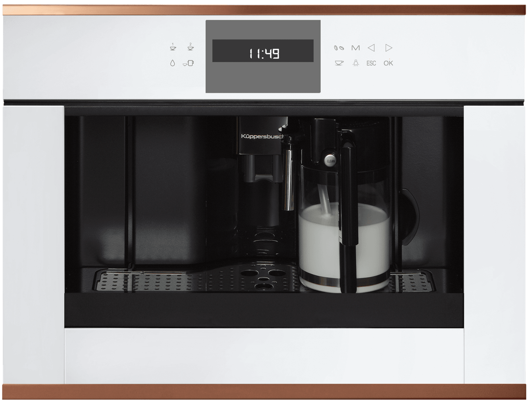 Духовые шкафы и кофемашины Kuppersbusch легко встраиваются в любую кухонную мебель, так как благодаря наличию емкости для свежей воды подсоединение к водопроводу не требуются