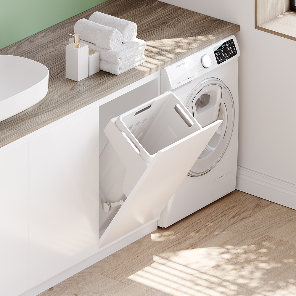 - Благодаря компактным размерам система хранения белья идеальна для небольших помещений – ванных комнат, кухонь или постирочных.