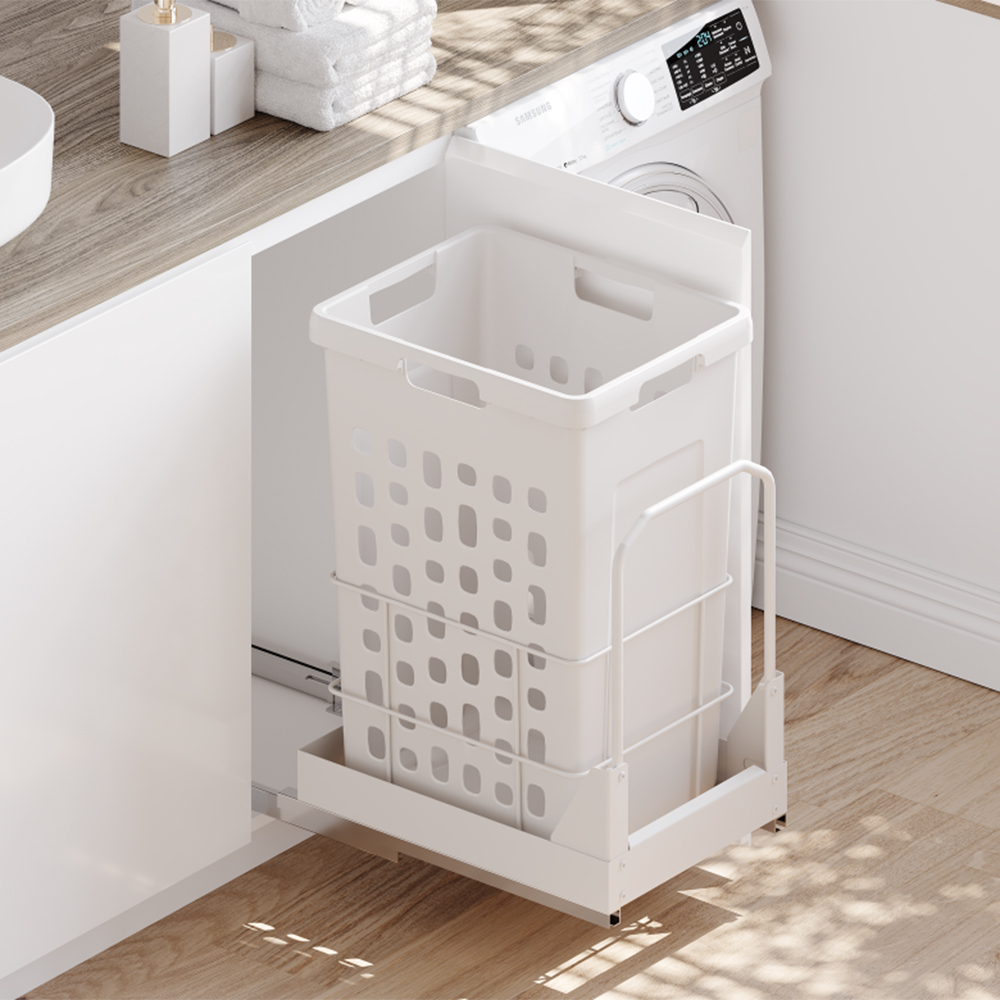 - Благодаря ручкам корзину легко снять и переместить к стиральной машине.