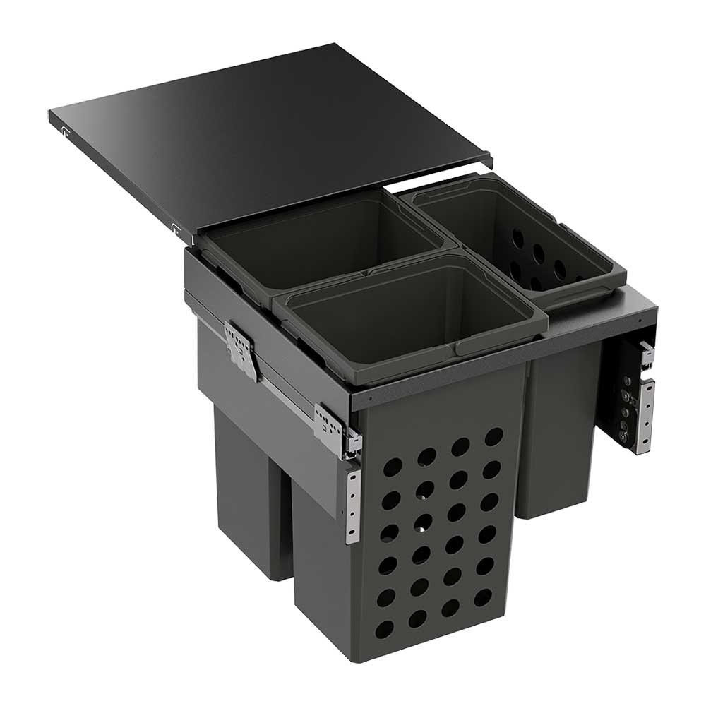 - Система включает две больших и одну маленькую корзины с отверстиями для вентиляции на боковинах.