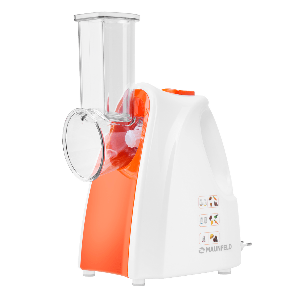 Электрическая овощерезка MAUNFELD MF-1031OR предназначена для тёрки и шинковки овощей, фруктов и других продуктов.