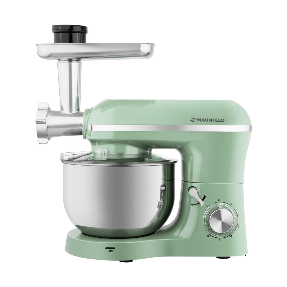 Универсальный мощный кухонный комбайн состоит из двух самых востребованных на кухне приборов: миксер и мясорубка.