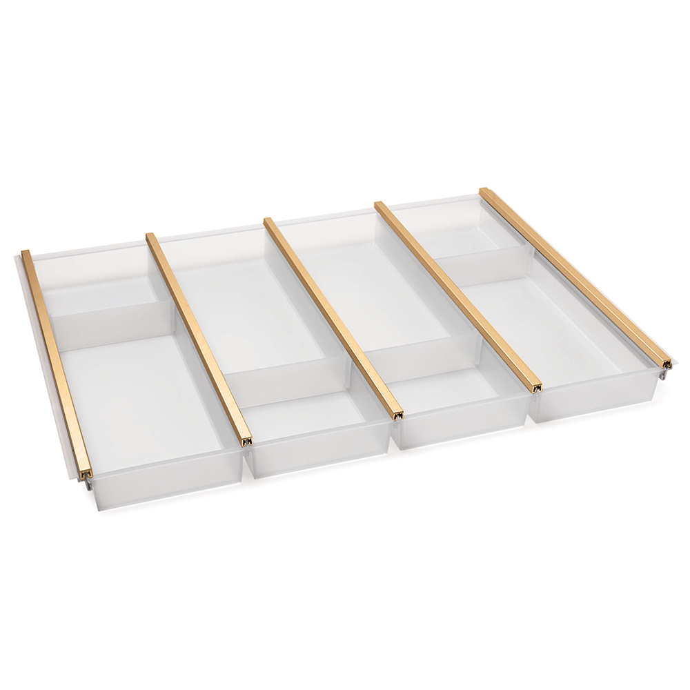- Имеет практичную форму отделений, узкие края и перегородки, что позволяет максимально использовать полезное пространство ящика, избавляя от мертвых зон.