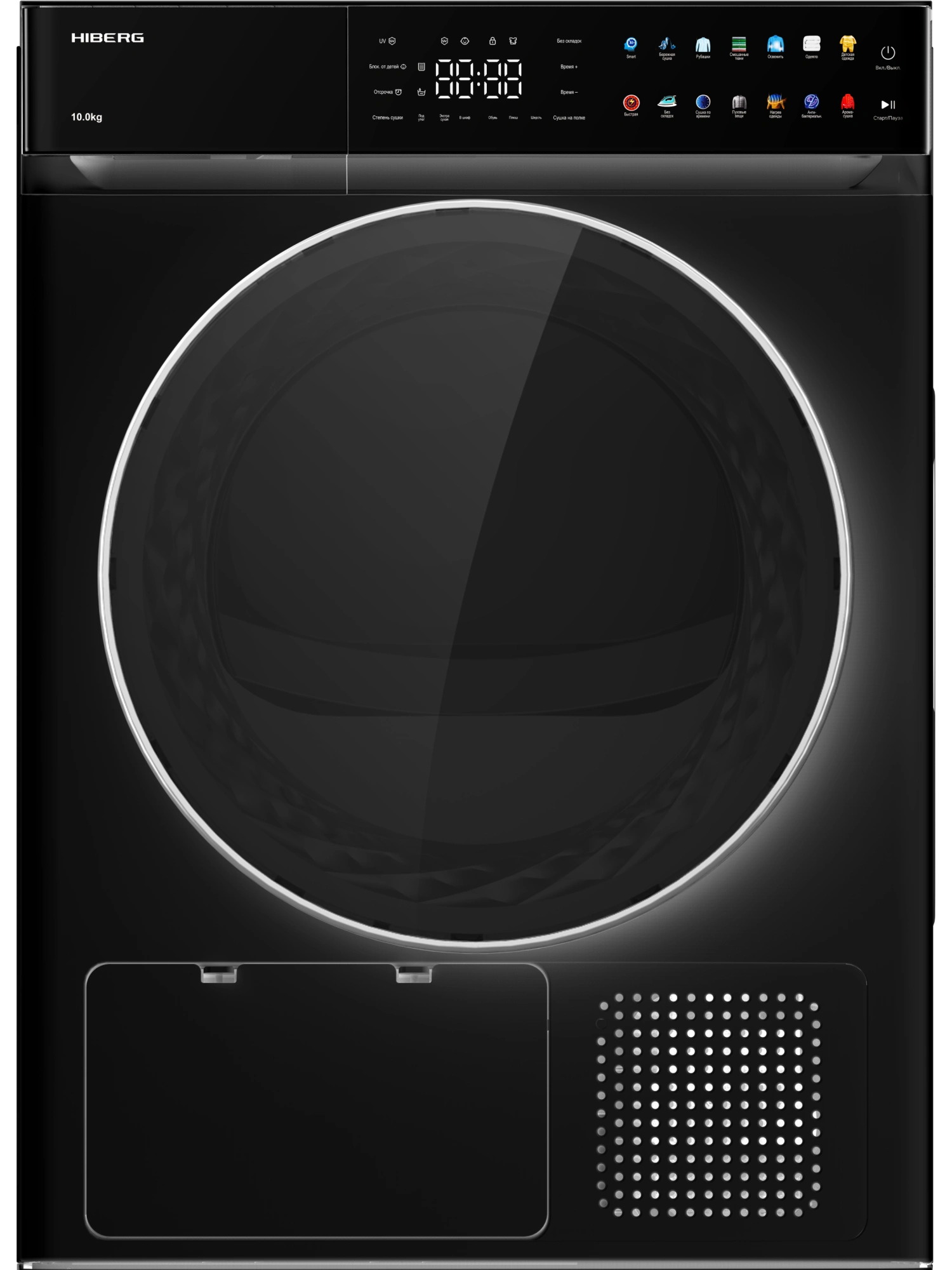 С помощью сенсорной панели управления можно установить специальную программу сушки с предустановленными настройками, выбрать время и степень сушки. Вся информация по выбранной программе отображается световой индикацией на цветном LED-дисплее, что позволяет легко подобрать оптимальные параметры для каждого цикла.