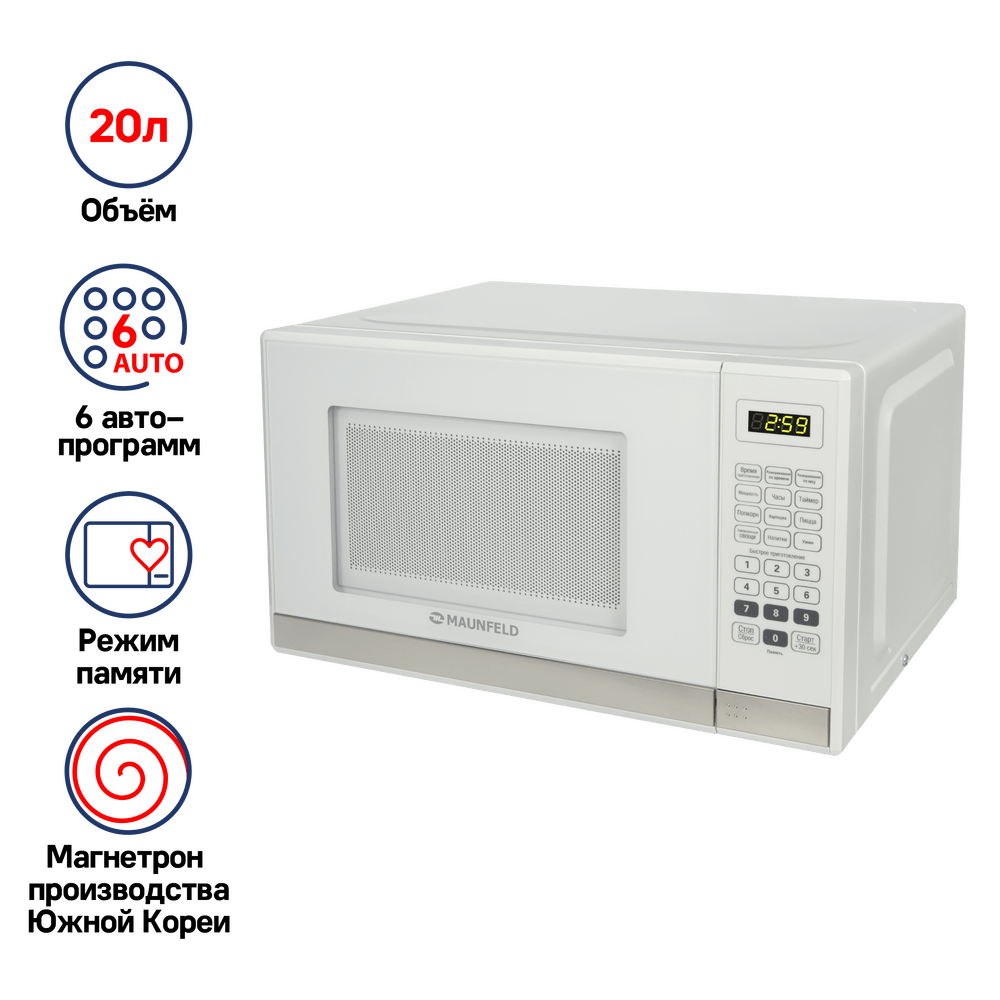 Отдельностоящая микроволновая печь из нержавеющей стали с электронным управлением и дисплеем. Оснащена высококачественным магнетроном.