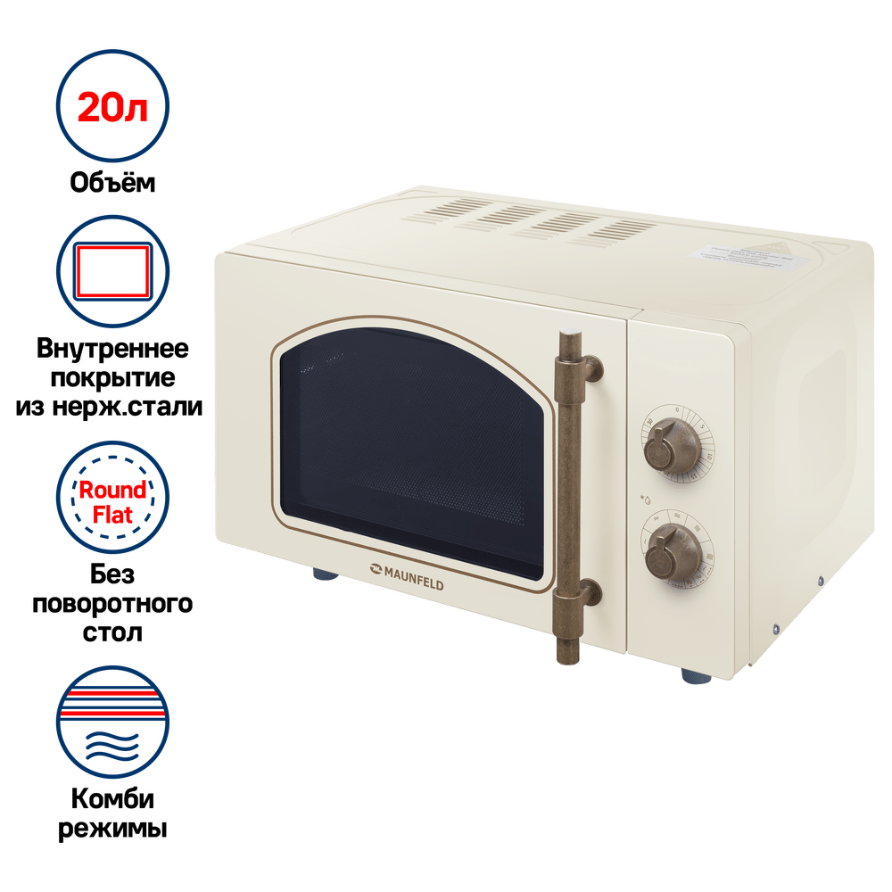 Отдельностоящая микроволновая печь мощностью 1080 Вт выполнена в ретро-стиле.