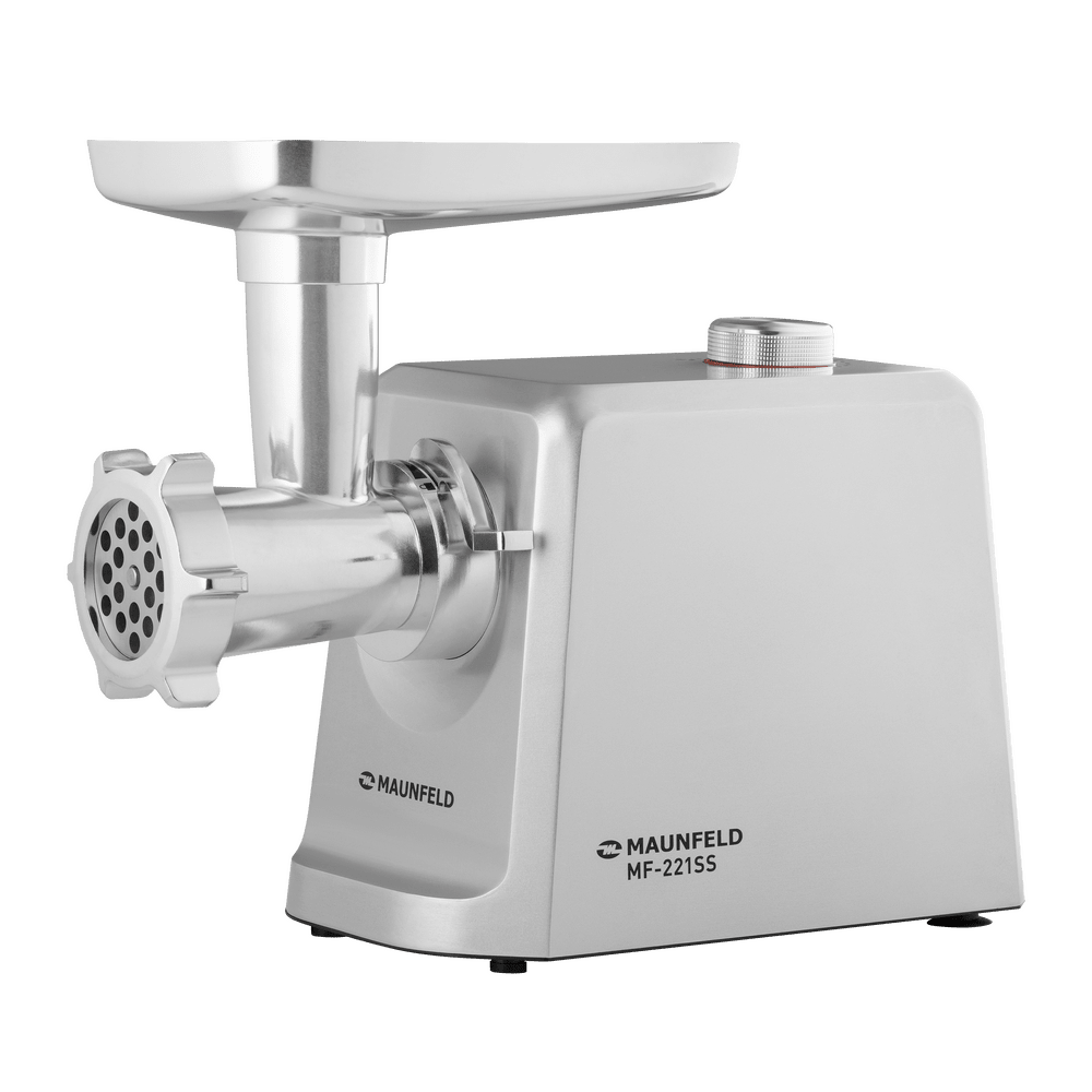 Электрическая мясорубка оснащена мощным мотором 1800 Вт и производительностью 2 кг/мин.