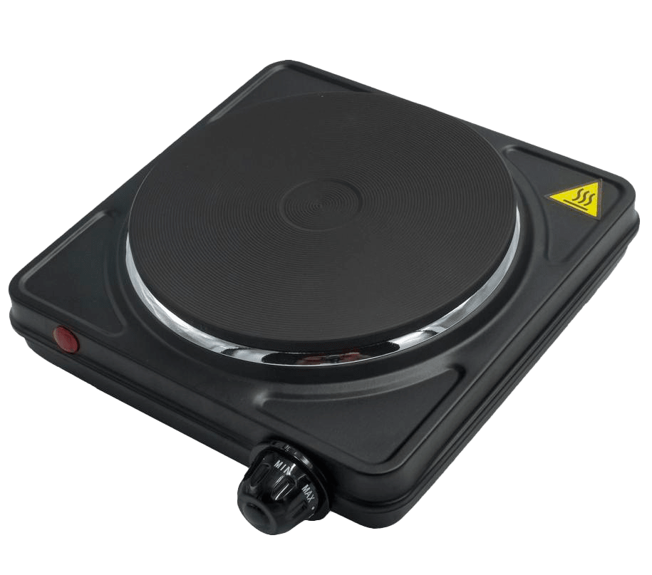 Классическая одноконфорочная переносная плита из металла с эмалевым покрытием. С индикатором работы и 5 уровнями мощности.