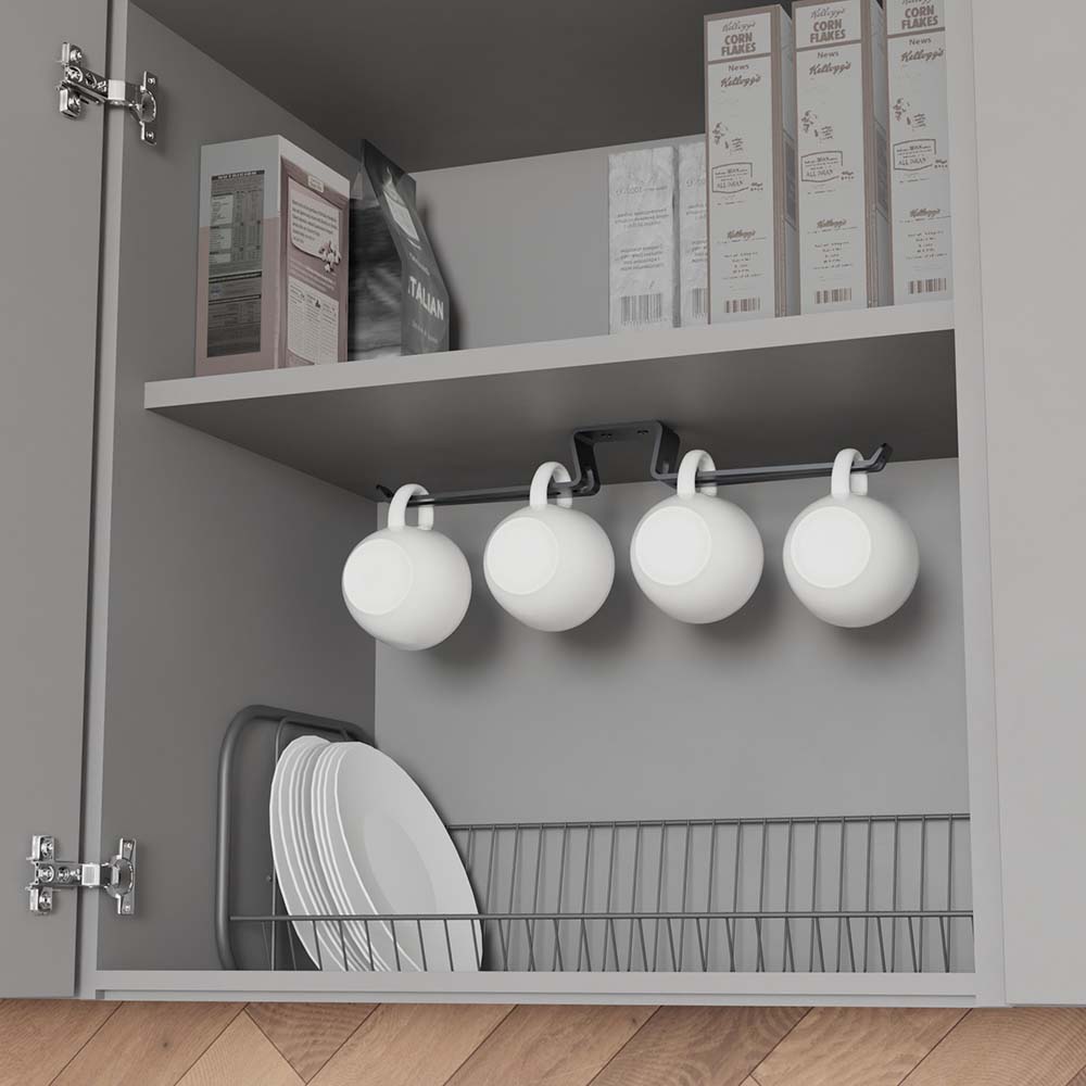 - Позволяет хранить и сушить чашки в малогабаритных кухнях, где проблематично разместить сушку для посуды.
