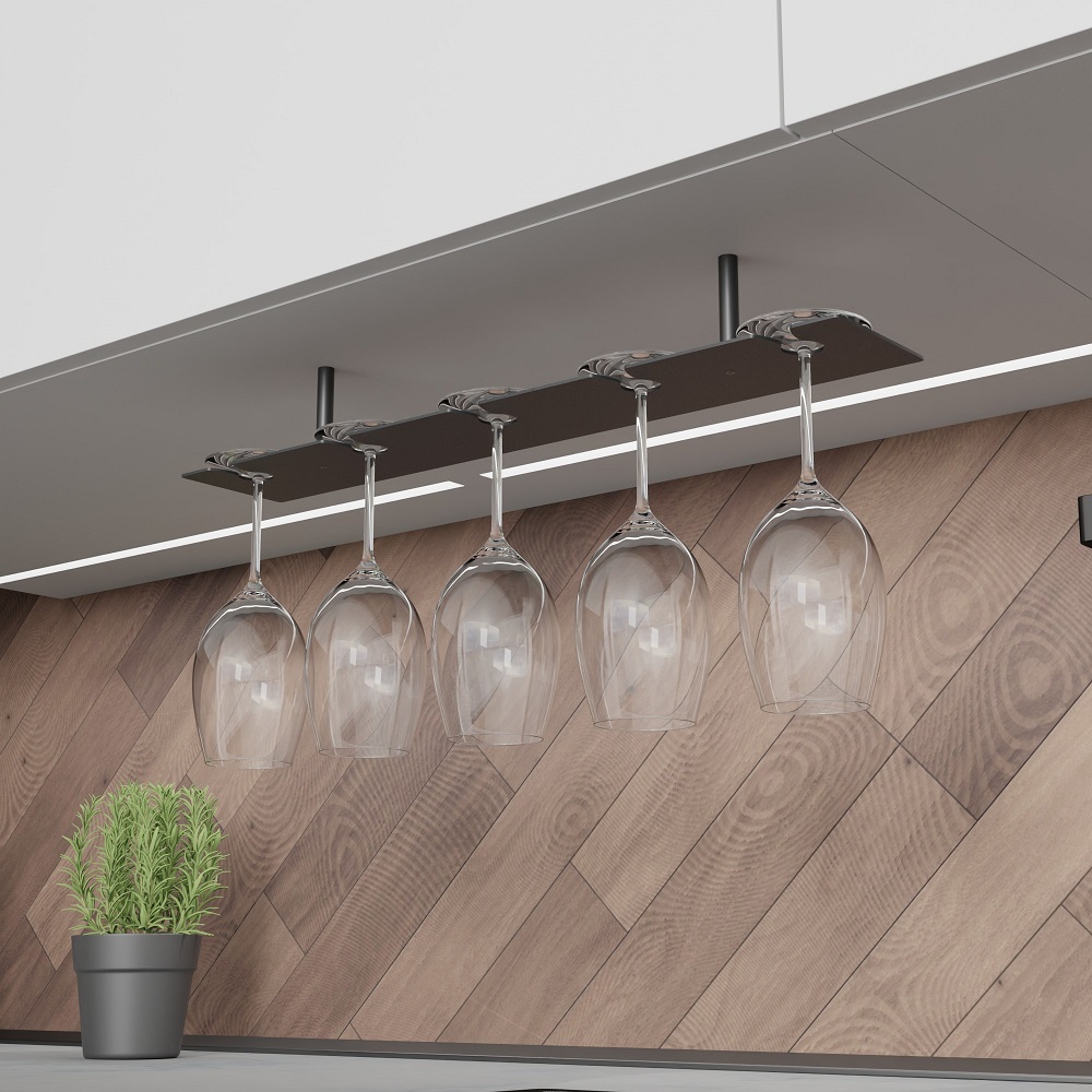 - Использование держателя для бокалов помогает организовать порядок и обеспечивает быстрый доступ к посуде, больше не придется тратить время на поиск нужного бокала на полке шкафа.