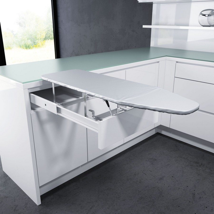 - Компактная выдвижная гладильная доска занимает минимум места в шкафу и позволяет рационально использовать пространство в доме.