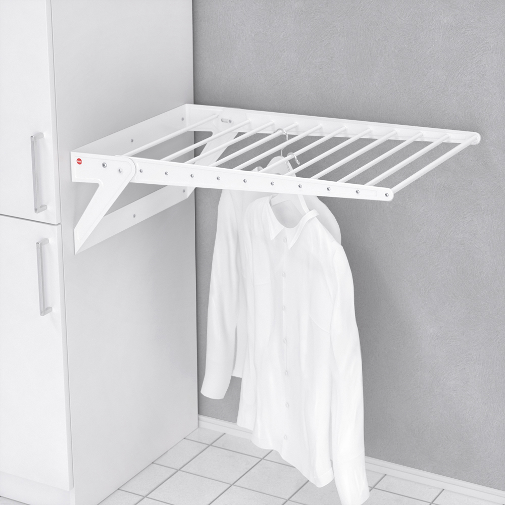 - Компактная сушилка для белья из стали, которая крепится к боковине шкафа или к стене, экономит пространство и обеспечивает качественную сушку белья.