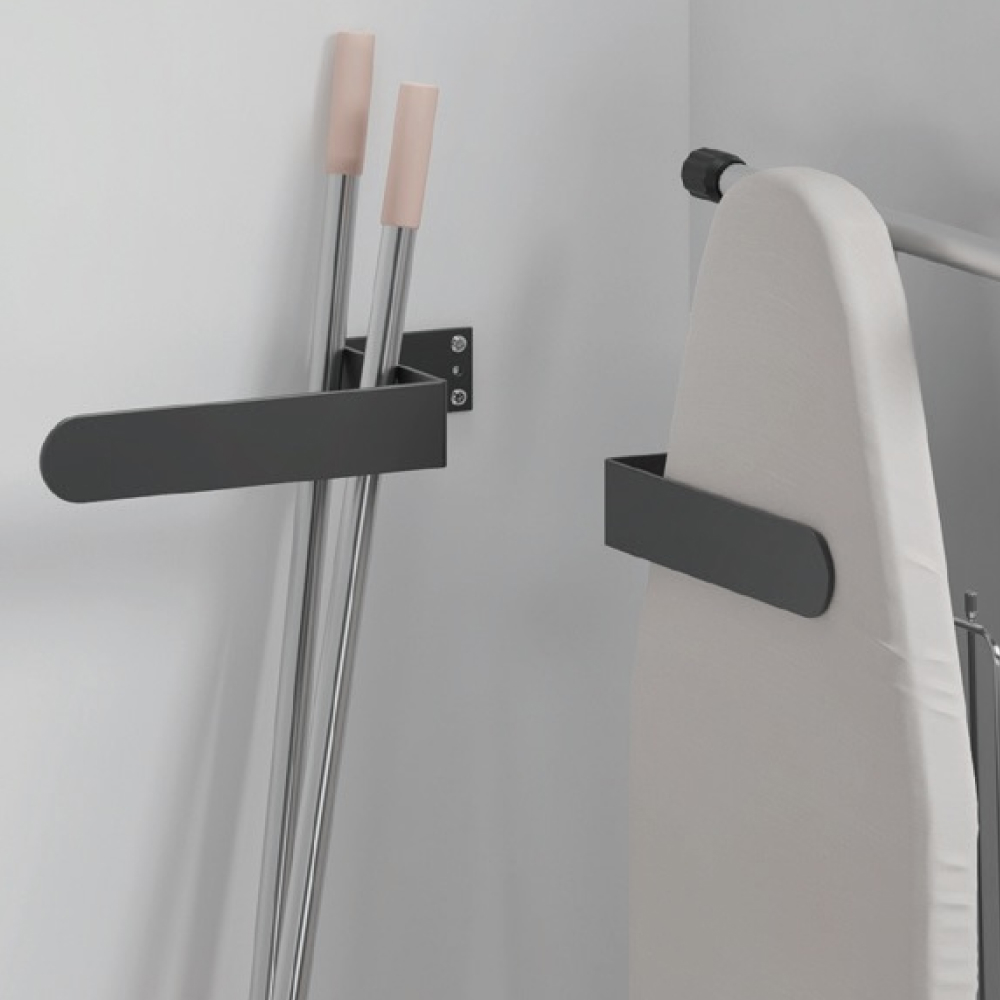 - Многофункциональный держатель обеспечивает надежную фиксацию крупных вертикально стоящих предметов домашнего обихода (например, гладильной доски, лестницы, швабр или щеток для уборки).