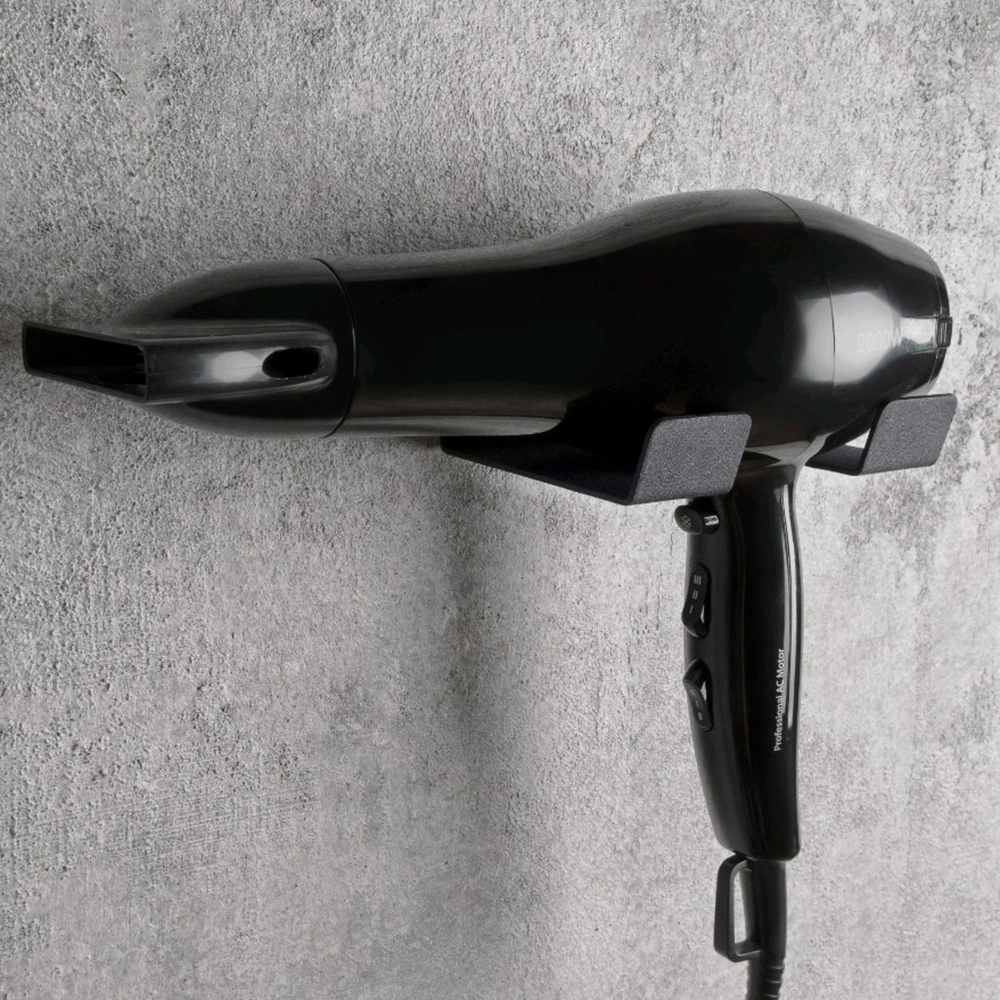 - Универсальная форма держателя позволяет хранить в нем фен различного типа и размера.