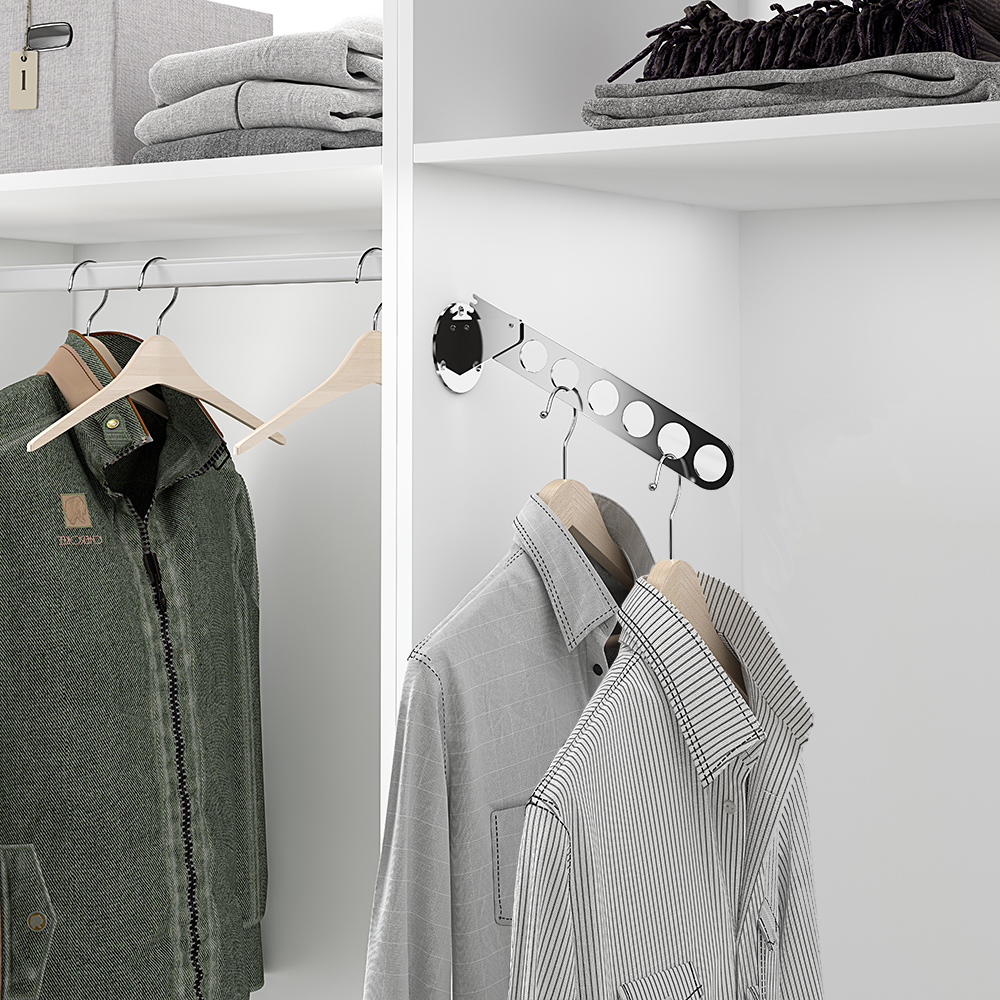 - Компактный, но вместительный держатель помогает удобно разместить одежду на вешалках.