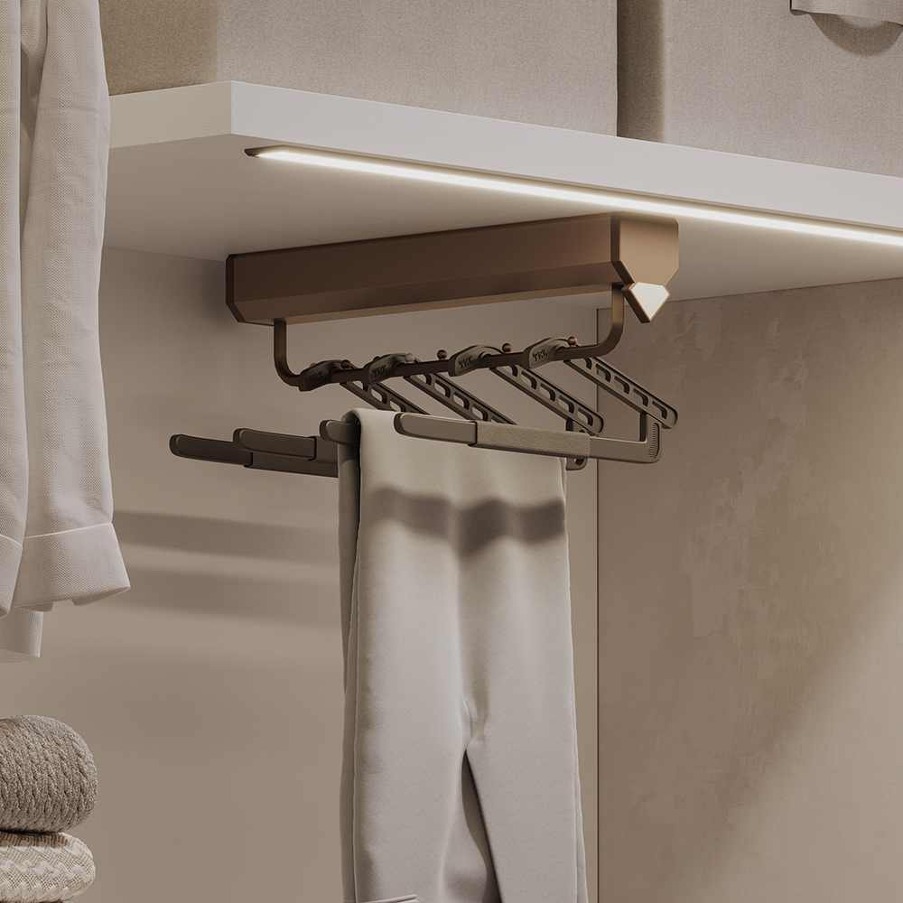 - Подходит для удобного хранения одежды на выдвижных штангах.