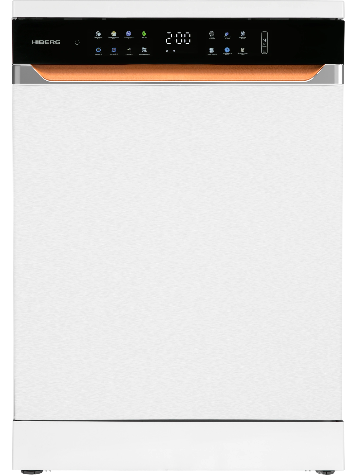 Стильные кожаные вставки на корпусе посудомоечной машины создают дополнительный эффектный акцент в вашем интерьере. Для управления посудомоечной машиной предусмотрена сенсорная цветная панель с большим дисплеем. Модель разработана в едином дизайне со стиральной машиной HIBERG I-DDQ10-814 W для гармоничного пространства и безупречного стиля вашей кухни или прачечной.