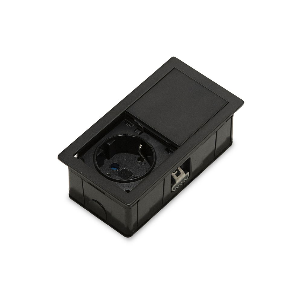 - Благодаря компактным размерам и небольшой глубине врезки всего 40 мм, розетка подходит для установки даже над выдвижными ящиками.