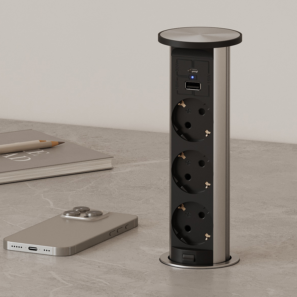 • Розетка выдвижного типа, специально разработанная для обеспечения удобства и функциональности в пространстве.