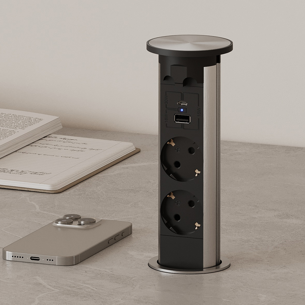 - Розетка выдвижного типа, специально разработанная для обеспечения удобства и функциональности в пространстве.