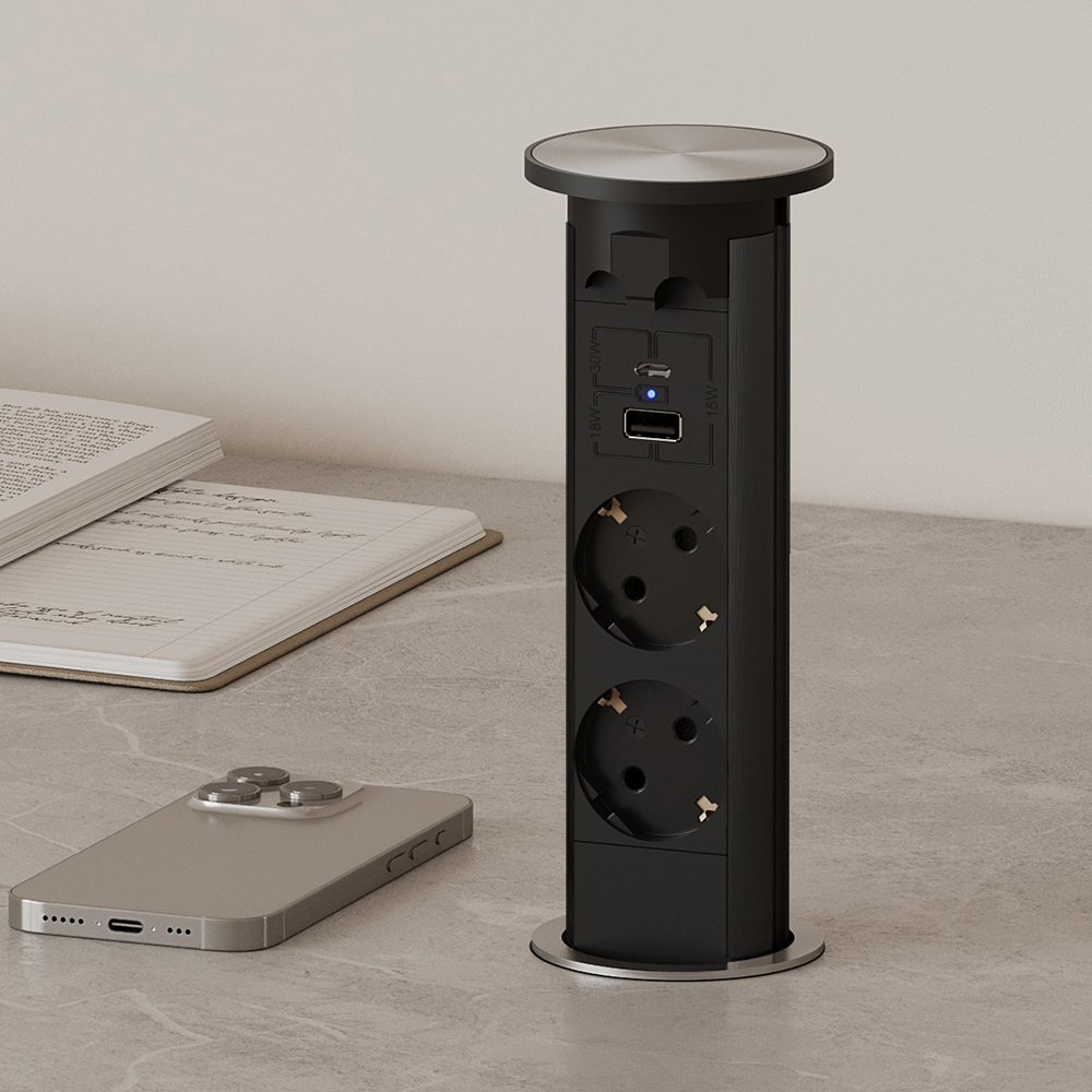- Розетка выдвижного типа, специально разработанная для обеспечения удобства и функциональности в пространстве.