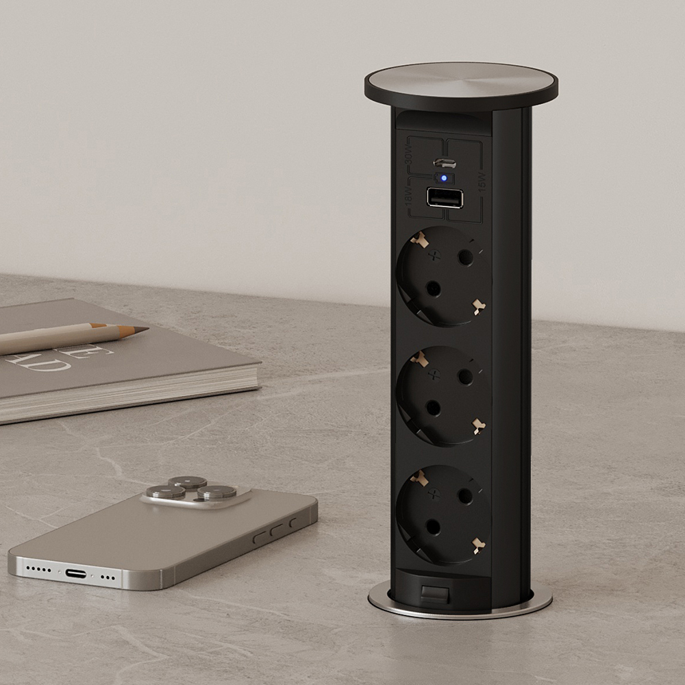 - Розетка выдвижного типа, специально разработанная для обеспечения удобства и функциональности в пространстве.