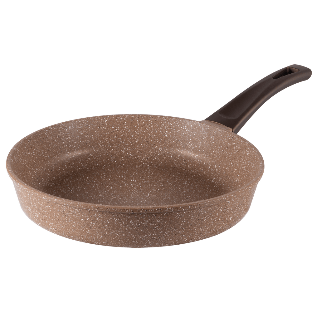 Сковорода с эффектным мраморным покрытием и современной ручкой в универсальном цвете, будет отлично сочетаться с любой кухней.