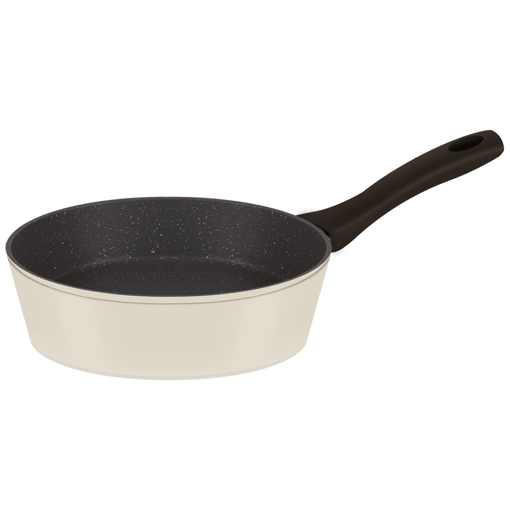 Эргономичная ручка из термостойкого бакелита с покрытием soft-touch не скользит в руке и не нагревается в процессе приготовления.