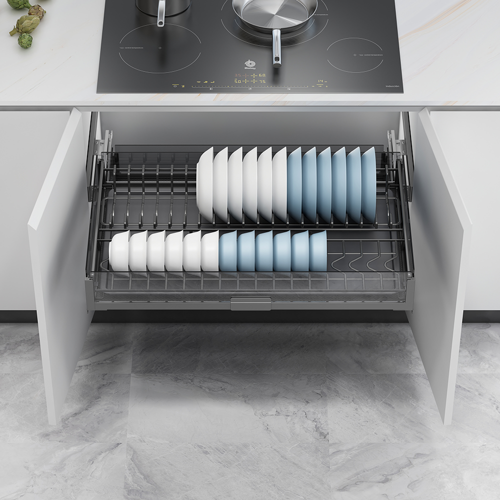 - Сушка позволяет организовать удобное хранение посуды в нижней секции шкафа.
