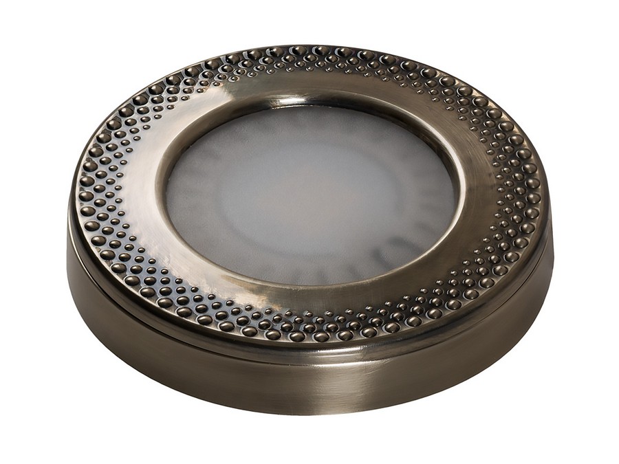 - Итальянский светодиодный светильник с дизайном в античном стиле и классической круглой формы подходит для подсветки рабочей зоны или декоративного освещения в кухне или гардеробной.