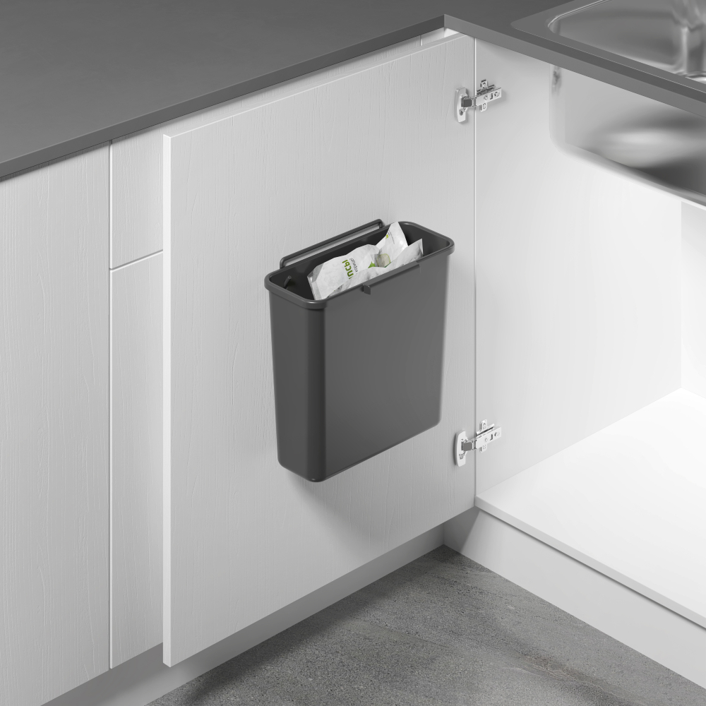 - Крепление ведра к фасаду позволяет сэкономить пространство внутри помещения.