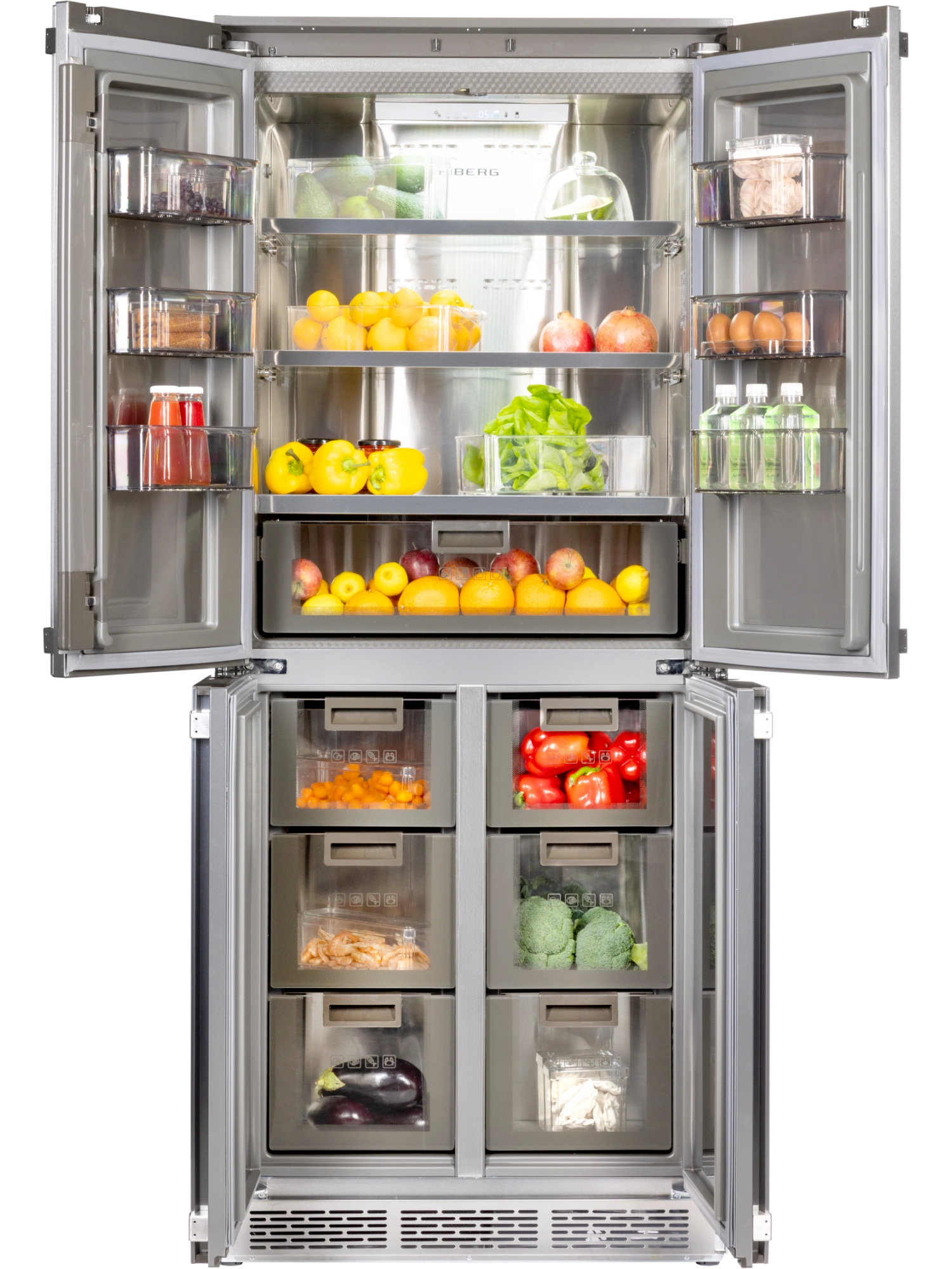 Встраиваемый четырехдверный холодильник HIBERG i-RFQB 550 NFG с инверторным компрессором, системой охлаждения Total No Frost, мультитемпературной зоной и электронным управлением современная и функциональная модель, которая идеально впишется в кухонный гарнитур, создавая комфортное и стильное пространство на кухне. Высота холодильника 190 см.
