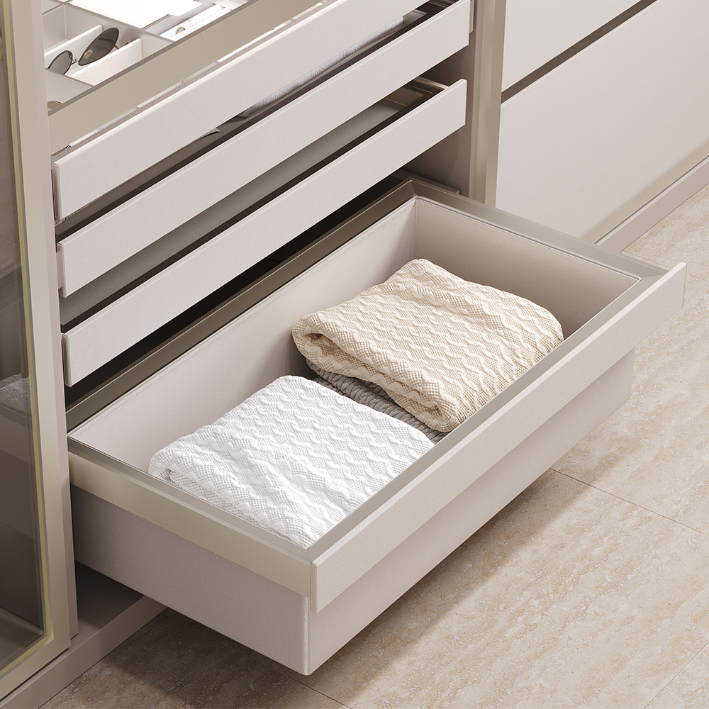 - Рекомендуем установить несколько выдвижных ящиков из коллекции друг над другом для организации удобного хранения в шкафу или гардеробной.